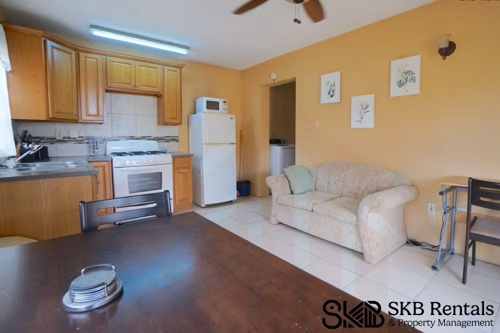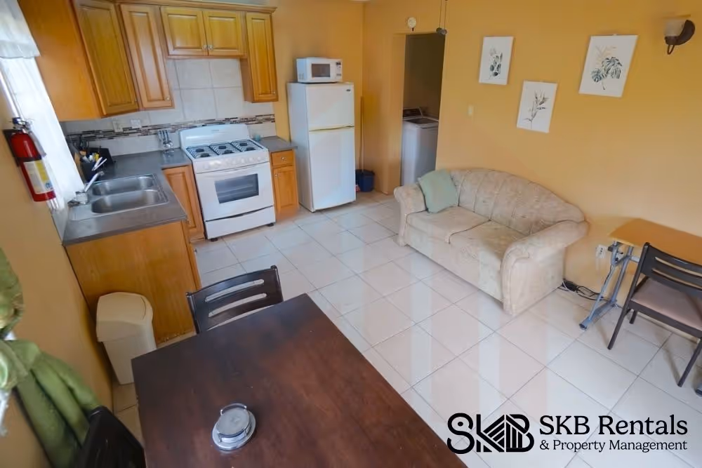 A lower-level furnished 1-bedroom apartment with a covered veranda, garden views, fully furnished, and conveniently located close to town is an ideal urban retreat offering both comfort and convenience.
