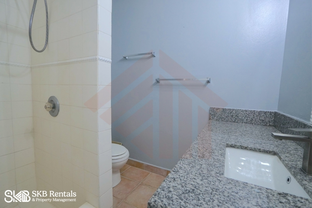 Located in Frigate Bay and offering sweeping views from the covered veranda the apartment is an oasis of calm and filled with light from the large windows and sliding glass doors. The bedroom area is large with adequate closet and storage space and bathroom with generous counterspace and walk in shower.