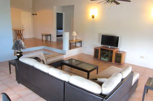 The three bedrooms area all large, the master has a private en suite bathroom and the remaining bedrooms share a bathroom. All the bedrooms are air conditioned.