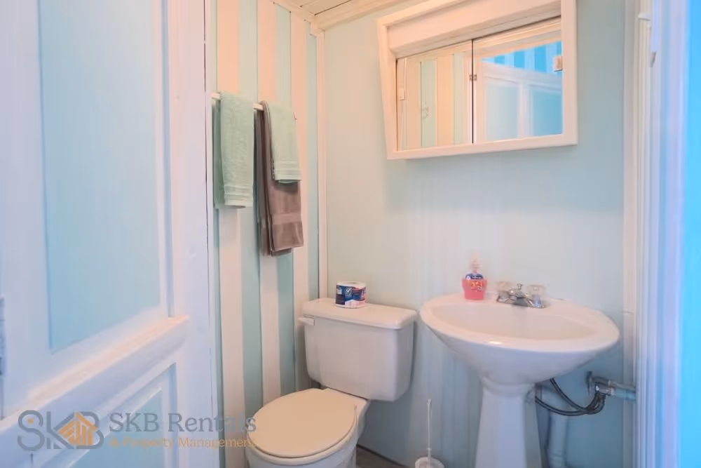 From the designated parking space adjacent to the entrance, the door opens to a reception area with a shower and separate guest bathroom. The washer and dryer is also located tucked away in a closet on this level.