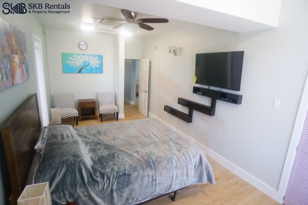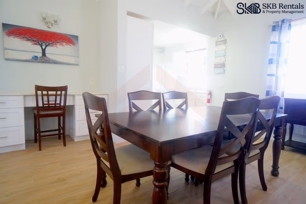 This newly renovated furnished home is offered fully furnished and move in ready. Electronic gates open for off road parking and lead to access via the covered veranda to the open plan living room or via the laundry room for easy access to the kitchen.