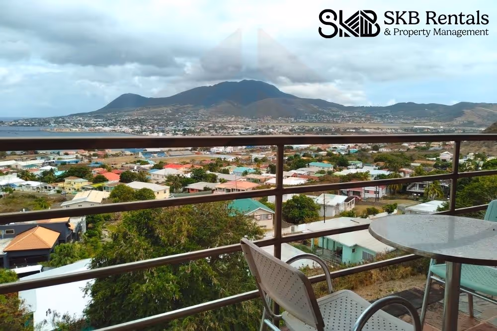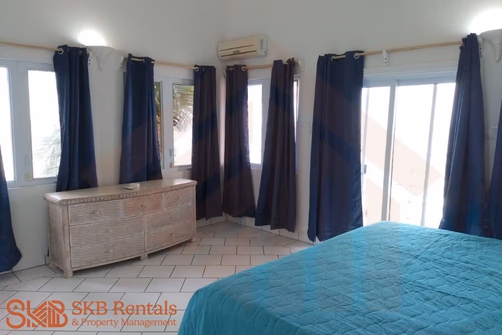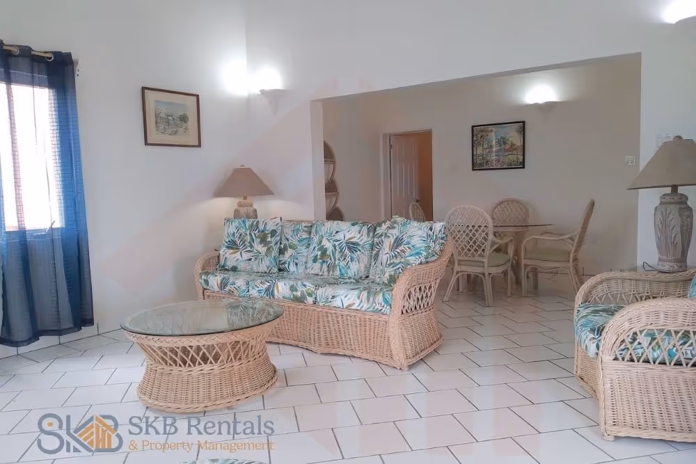 This spacious furnished apartment with off road parking, is situated in Bird Rock with sweeping views of the Basseterre harbour and the incoming cruise ships. A well equipped kitchen, separate laundry with washer and dryer and office space are complimented by the open plan dining and living room. The main living area and office room are not air conditioned.