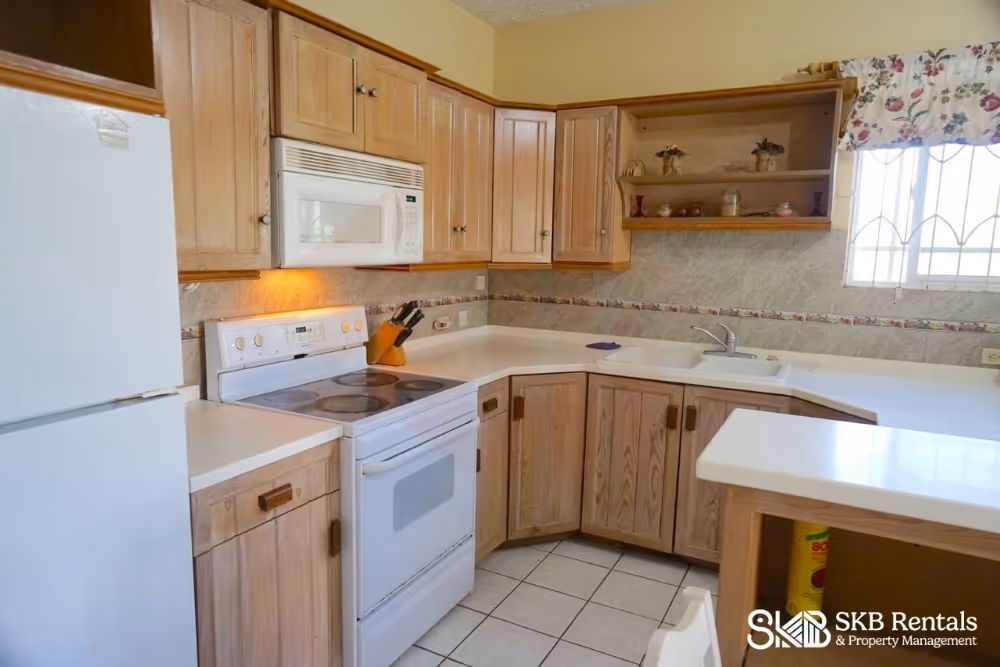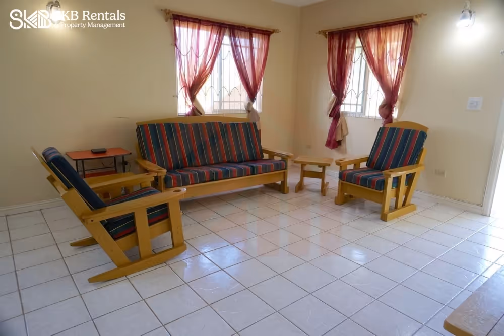 Located in Earles Morne, an area of Bird Rock the apartment has easy acess to the main road, Basseterre and other conveniences. From the parking area, the property opens to a very spacious living, dining and kitchen area with a number of windows providing light and breeze. The kitchen is well equipped with cupboards and counter space.
