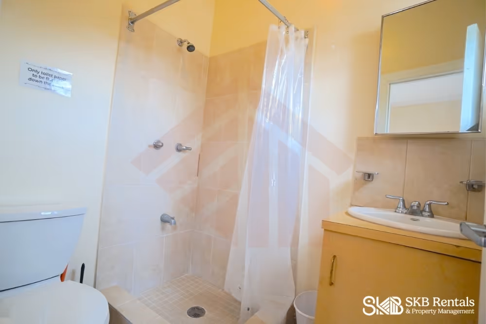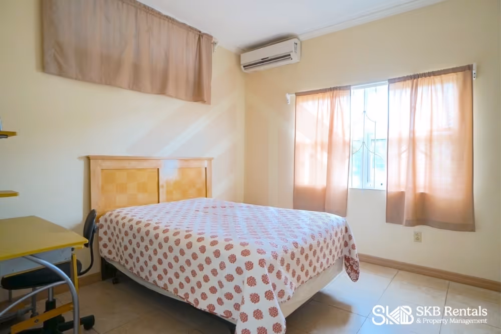Each bedroom is air conditioned and has a generous closet space, dresser, study desk and ensuite bathroom. The bathroom consists of a shower, toilet and vanity unit.
