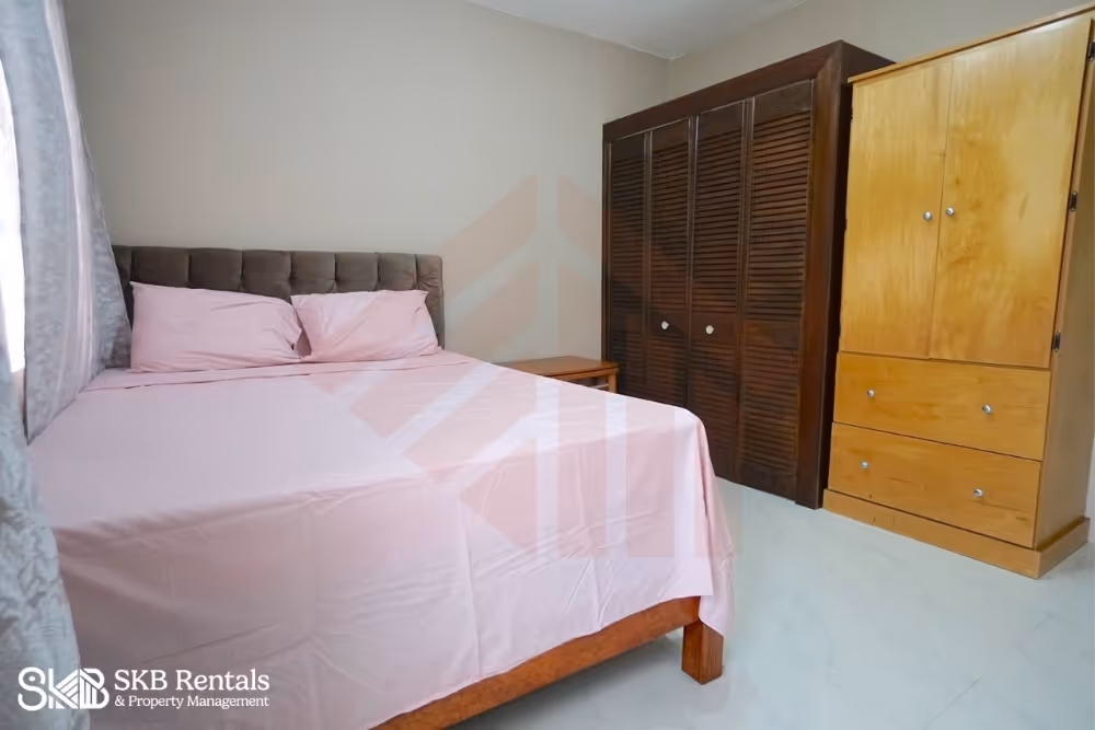 This furnished apartmetn is located close to public transport and local amenities. Upon entering the apartment, you're greeted by an open-concept living area that seamlessly blends the living room, dining area, and the adjacent kitchen. The space is optimized to provide a sense of openness while still maintaining distinct zones for different activities. Large windows line the exterior walls, allowing ample natural light to flood the space and creating an airy ambiance.
