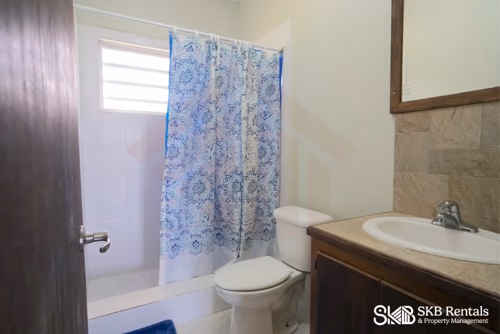 The bedroom is designed with relaxation in mind. It features a comfortable queen-sized bed built-in closet space which provides ample storage for clothing and personal items. The large window continues to provide natural light to this area, and blackout curtains offer privacy and help create a restful sleep environment.