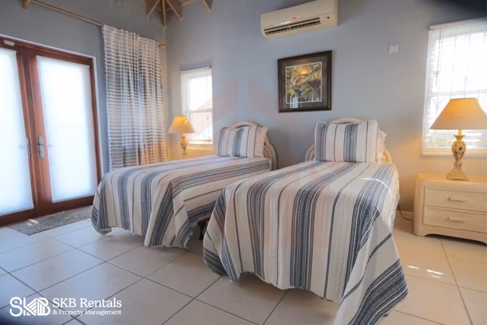 The upper level features the linen closet which is equipped with adequate linens and towels and the two bedrooms - the master bedroom with en-suite bath and small private veranda offering ocean views and the second guest bedroom with private bathroom and Juliet balcony offering ocean views of the Caribbean. Both bathrooms have tubs and showers. The villa also has parking space for one vehicle and there is additional guest parking adjacent to the property. This development offers a community tennis court and an outstanding award winning infinity edge community pool both of which are just a few minutes walk from the villa.