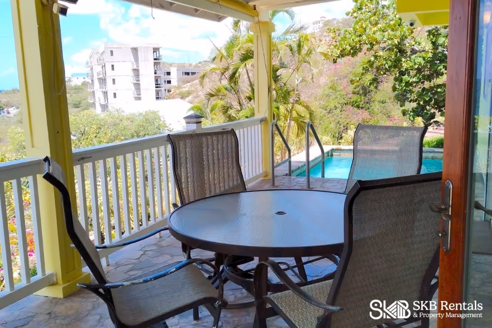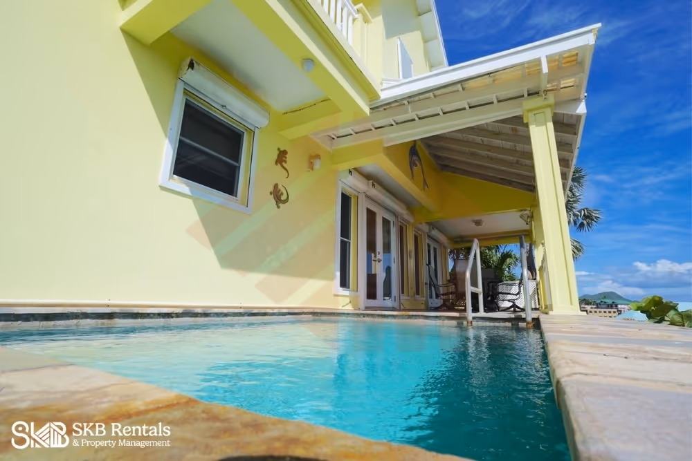 This villa is located on a corner lot offering 180 degree views of the Caribbean. Parking for 2 vehicles leads to the entry way which opens to the spacious air conditioned living space including a convenient laundry area and guest bath room and a kitchen with upgraded stainless steel appliances. The veranda which is accessed through french doors, features a plunge pool and a Viking BBQ and patio furniture so that the view can be enjoyed.