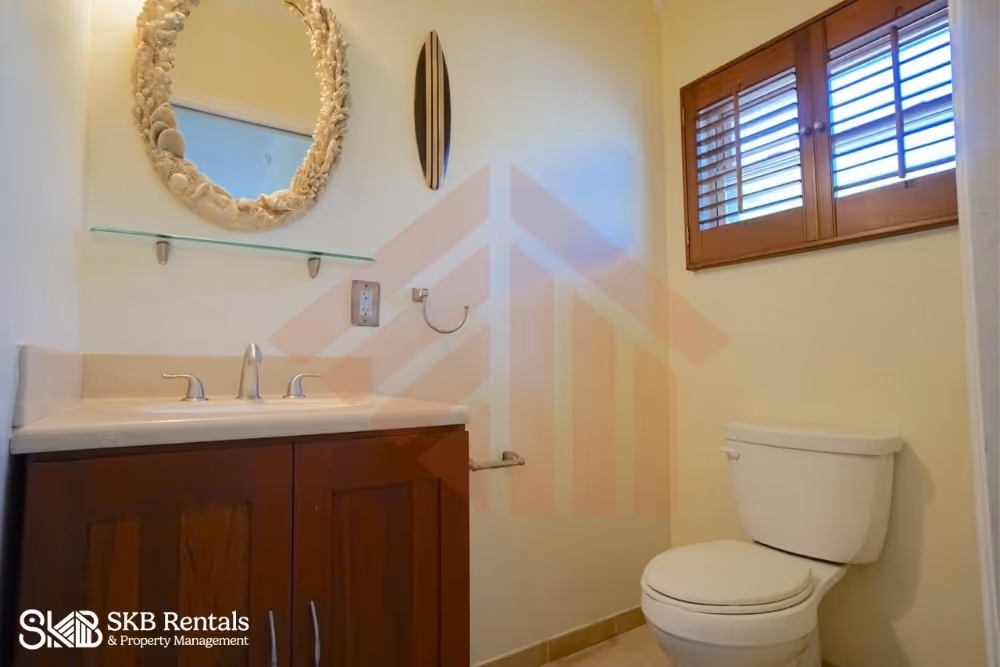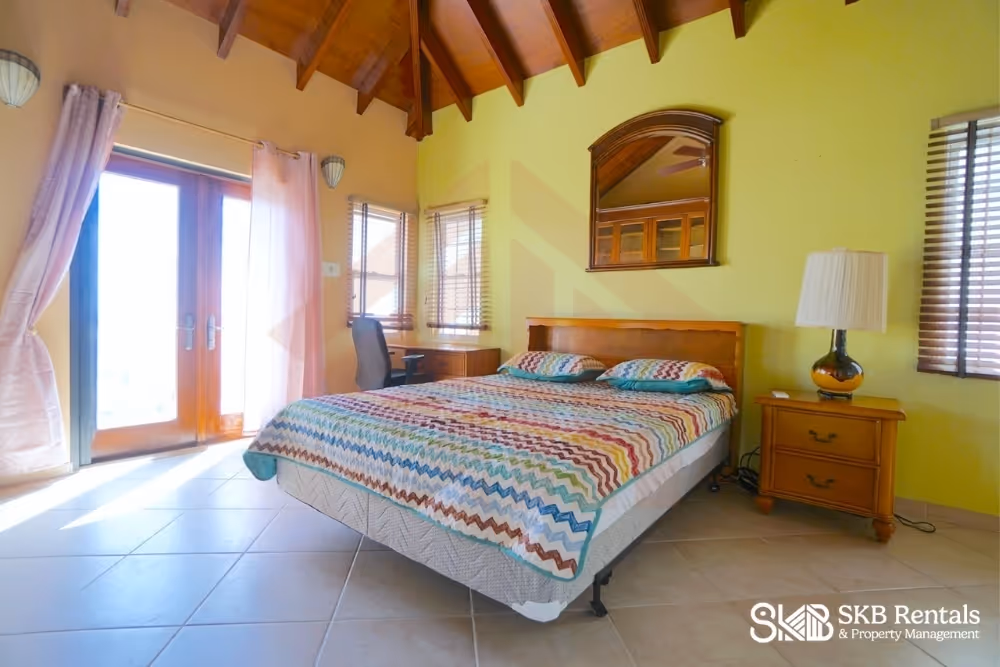 The air conditioned master bedroom is large with natural light, closets and private veranda and has an en-suite bathroom. A large private veranda off the master bedroom opens to uninterrupted views of the Caribbean. The 2nd air conditioned guest bedroom is large and spacious with a Romeo and Juliet balcony accessed via french doors. This home comes with many upgrades including professional landscaping and in ground sprinkler system and lighting, UPS backed security system and lighting, 15KW generator with automatic transfer switch and 100 gallon fuel tank, hurricane shutters on all ground floor windows and french doors and phantom insect screens on the french doors.