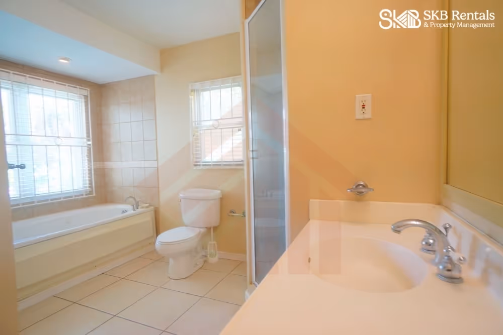 The large third bedroom is located on the lower floor of the property which is accessed via stairs and has plenty of closet space and an en-suite bathroom with tub and separate vanity. All the bedrooms are air conditioned.