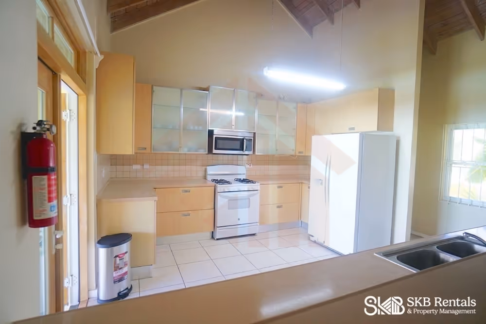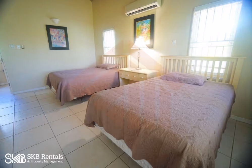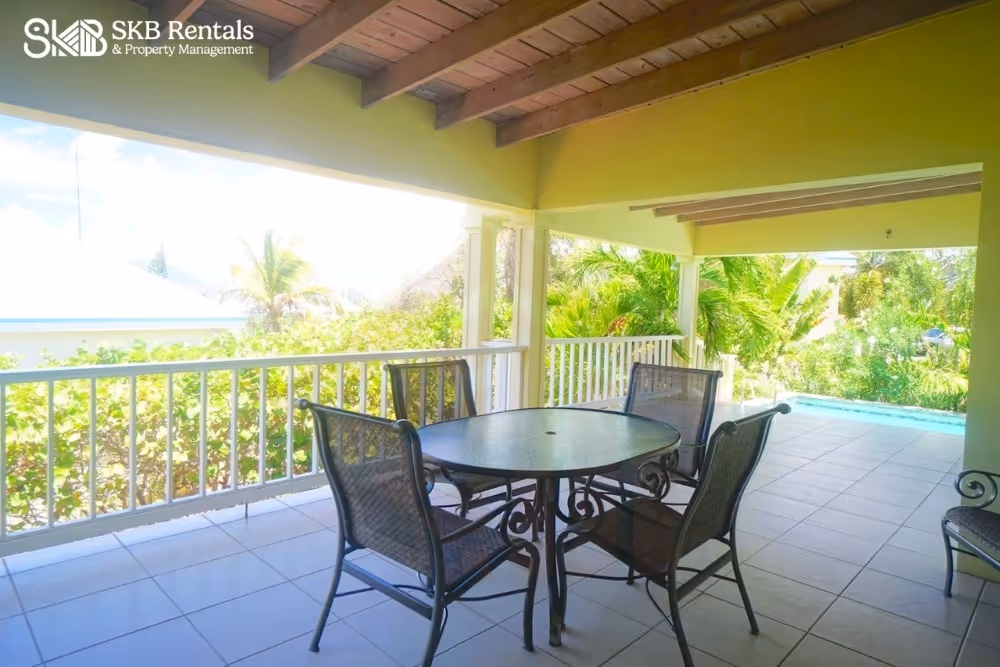 The covered veranda provides entertaining space and access to the pool deck. The villa is also located close to the main pool which is just steps away. The yard is not fenced. Calypso Bay is a desirable development with night time security, community tennis court and pool.
