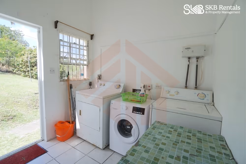 A large laundry with full size washer and dryer complete this rental apartment. The apartment is TV and internet enabled and has security bars on all windows. The garden is shared with one other unit.