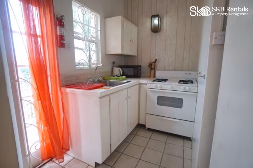 This furnished apartment is ideal for a single person. Featuring a galley kitchen with gas stove, fridge and microwave the compact area also features the living room. The bedroom is air-conditioned and has reasonable closet and storage space. The bathroom is a shower only with basin and toilet.