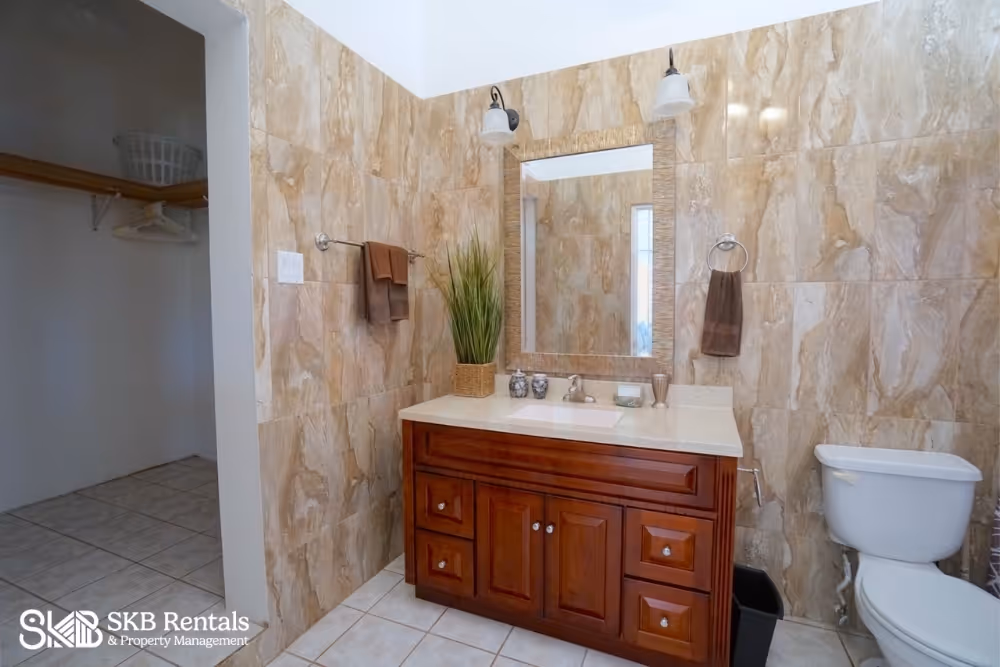 This furnished 1 bedroom apartment offers tranquility and ocean views but is still located in the heart of Frigate Bay. The apartment has its own washer dryer and can be accessed from either the kitchen door or via the veranda. The kitchen is well equipped with stainless steel appliances and features a cute dining table and chairs. The bedroom is light and airy with a number of windows opening to allow in the natural breeze and is completed in light colours.