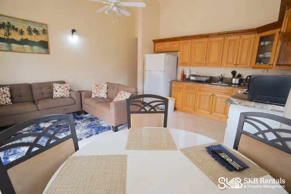 This nicely furnished apartment is move in ready. Located in the heart of Frigate Bay, the apartment does have space for off road parking.