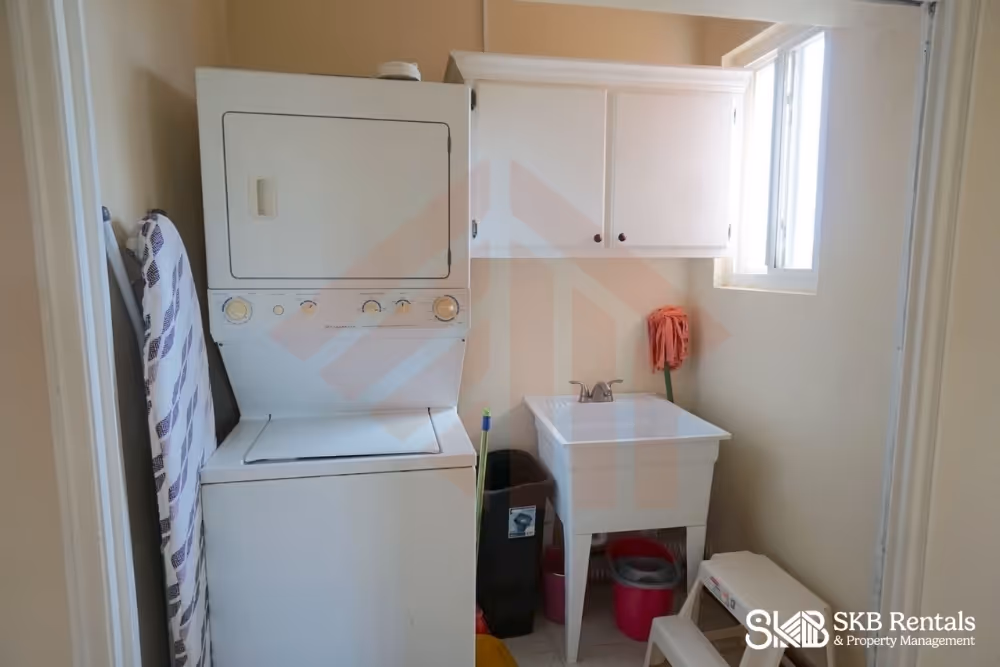 A laundry area is fitted with a washer and dryer and is located conveniently between the bedrooms. The bedrooms have windows with security bars and are both air conditioned.