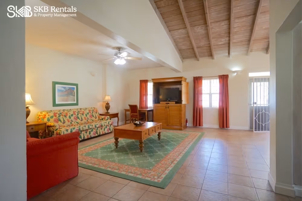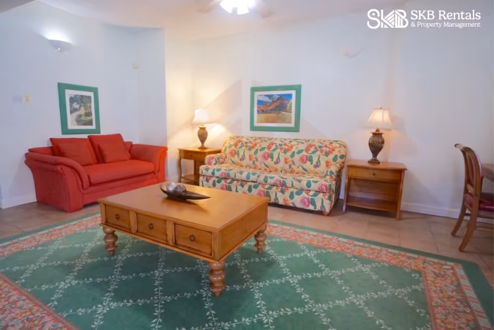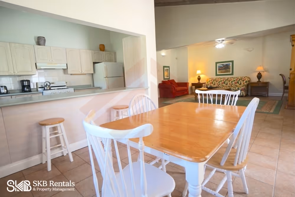 The apartment comes fully furnished with a tastefully designed living area with comfortable seating, a dining area, and all the necessary appliances in the kitchen.    One of the standout features of this apartment is its spacious layout. The open living and dining area provides plenty of room for relaxation and entertainment, while the bedrooms offer privacy and comfort. A separate laundry area offers a full sized washer and dryer for your convenience.  You won't feel cramped in this well-designed space.