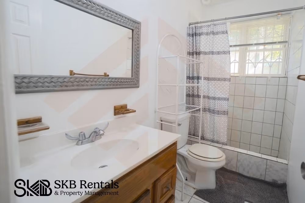 This furnished 2 bedroom, 2 bathroom apartment is located in Frigate Bay close to the main road and local amenities. A gated entrance offering off road parking, leads to a covered veranda and the entrance to the apartment.