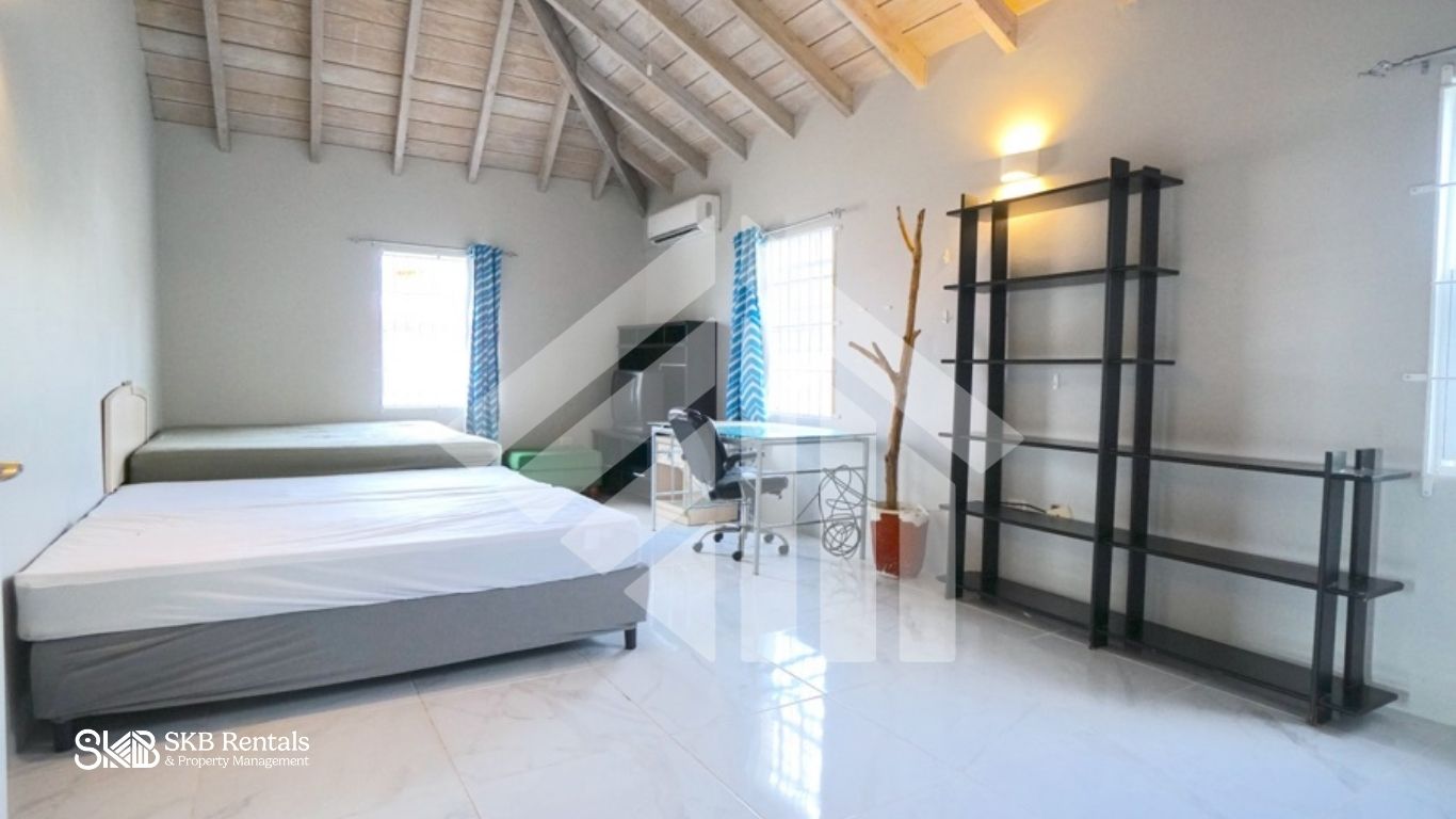 Each bedroom features its own ensuite bathroom and air conditioning, ensuring privacy and comfort throughout. The upper-level bedrooms are generously oversized and feature striking cathedral ceilings, creating a bright and airy atmosphere.