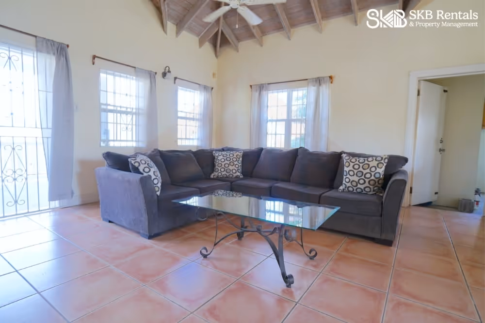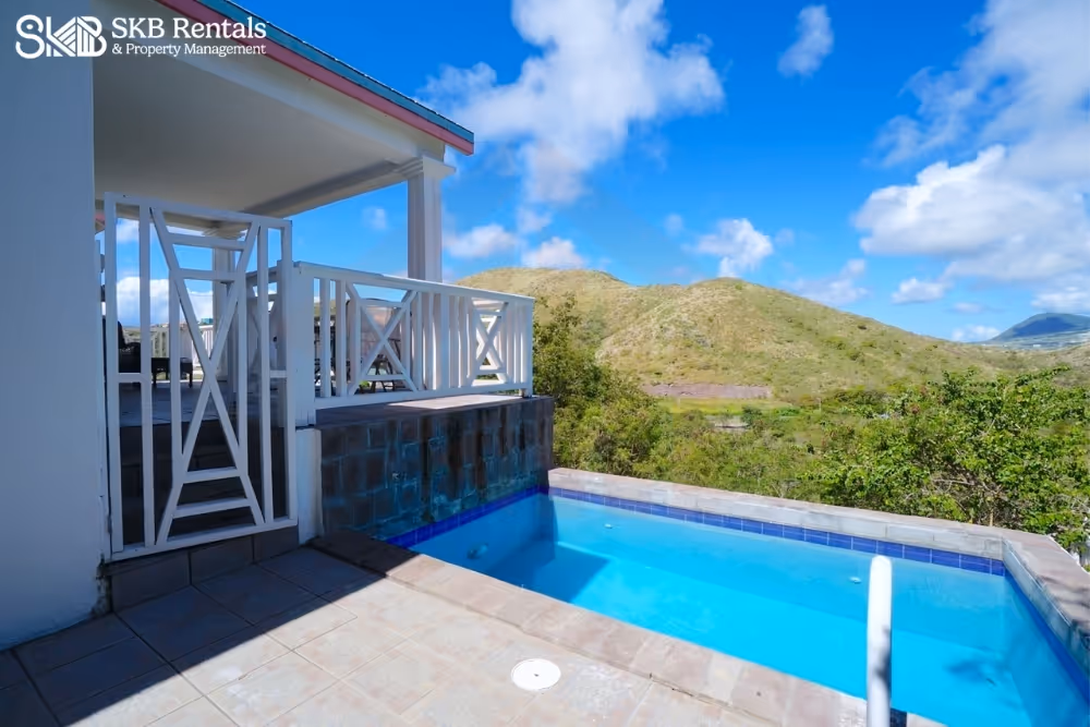A covered veranda accessed from french doors opens to the views of Basseterre and beyond. A small plunge pool with sun deck is accessed via a few steps which have a small gate separating this area from the main veranda area.