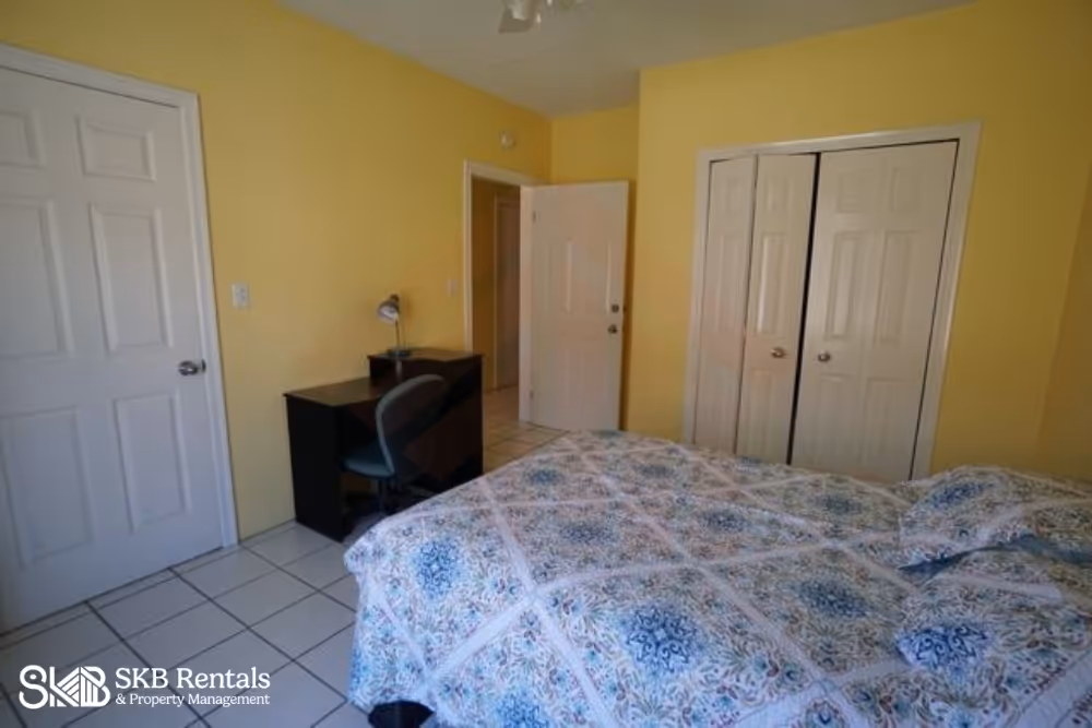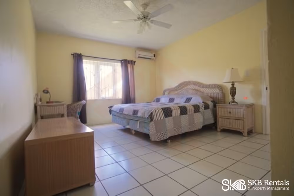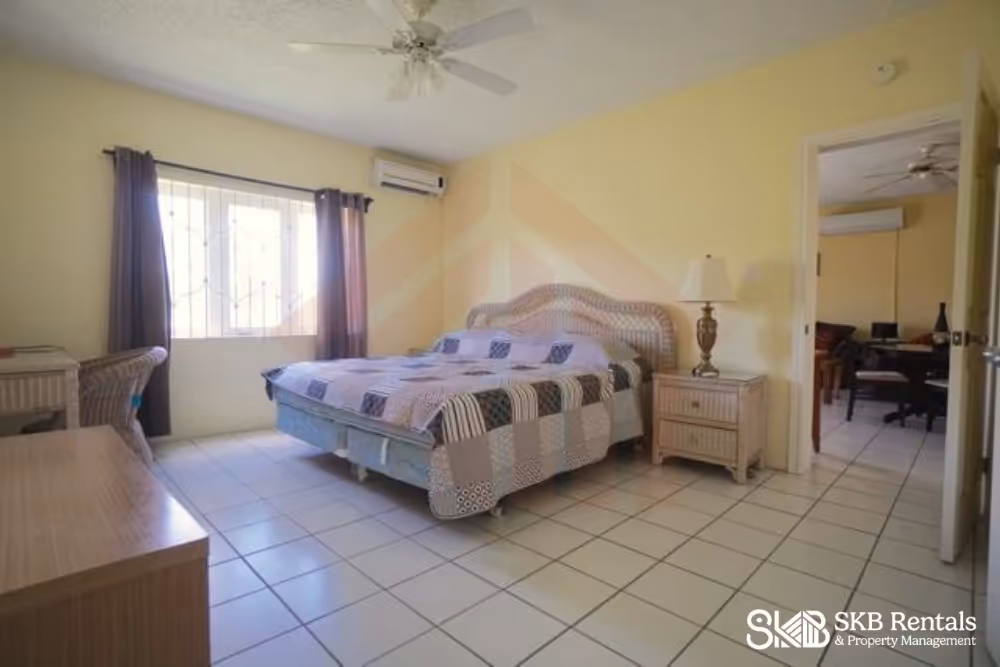 Both bedrooms are air conditioned and the kingbed master suite features en-suite bath whilst the full size bed in the second bedroom has a private bath both with showers only. Full burglar bars on all windows and security screen door on entrance.
