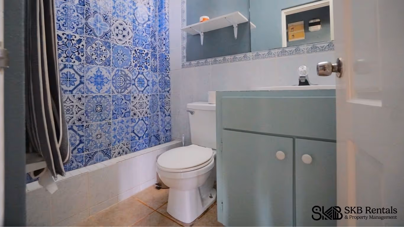 The large porch with full water view and chairs is steps from a private parking space. There are shared laundry facilities and cable and internet are included.