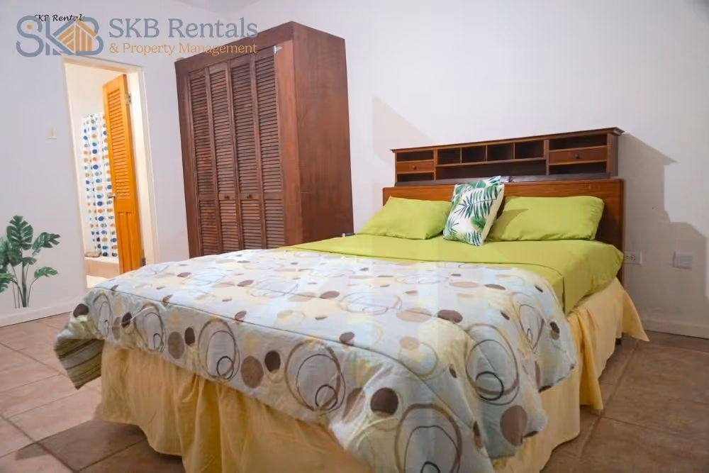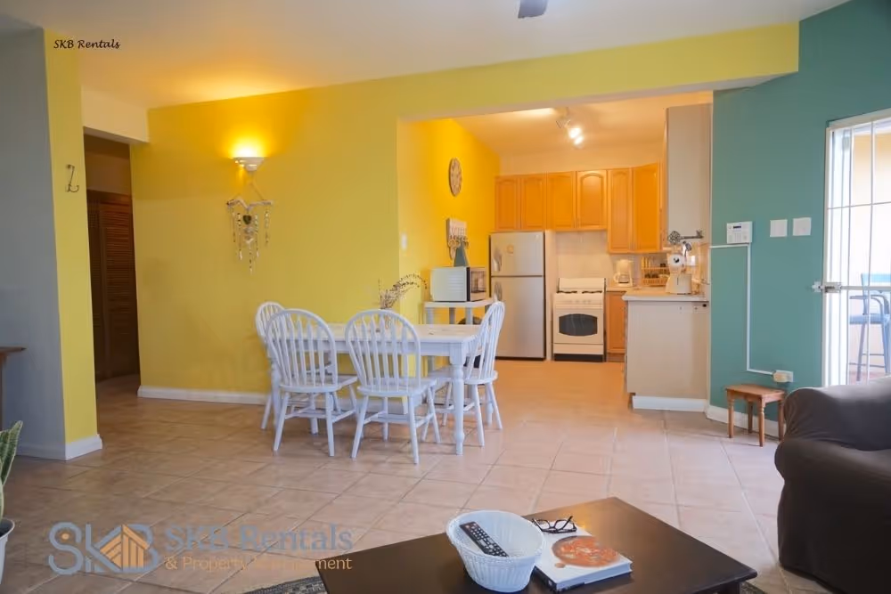 The apartment has burglar bars and security cameras and is internet and TV enabled
