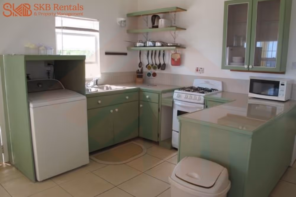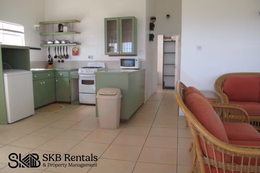 This upper level apartment features a covered veranda with ocean views, functional kitchen and open plan living and dining room. The apartment has many windows allowing natural light and breeze to enter the apartment and security bars on all easily accessible windows and doors. A washing machine is located in the kitchen for your convenience - line drying on the covered veranda.