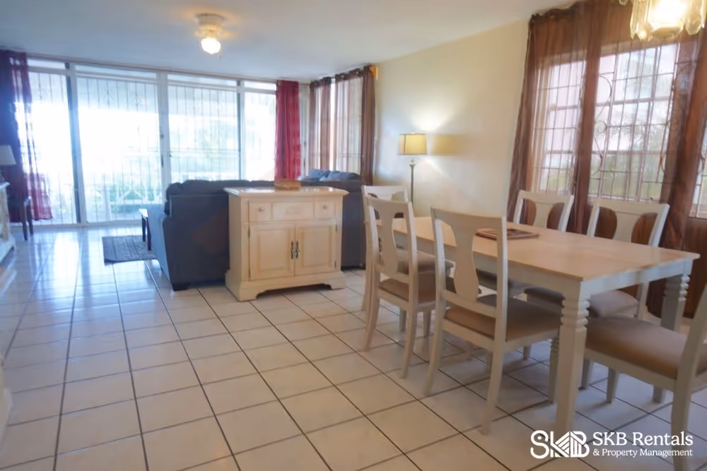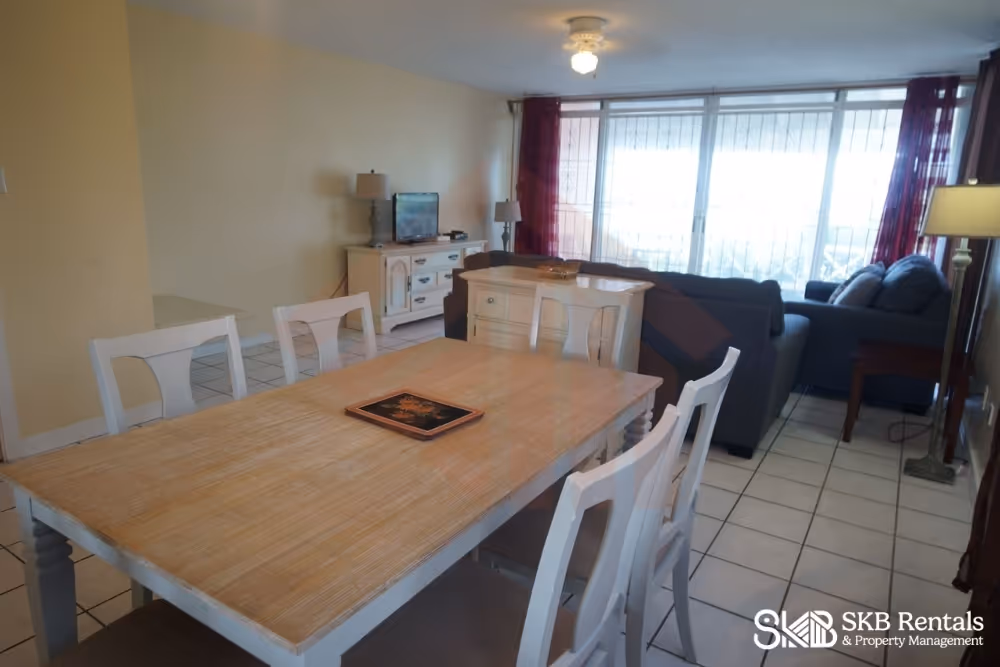 This furnished 2 storey villa offers open plan living with the addition of a covered wooden deck area overlooking the sweeping vista of Frigate Bay.