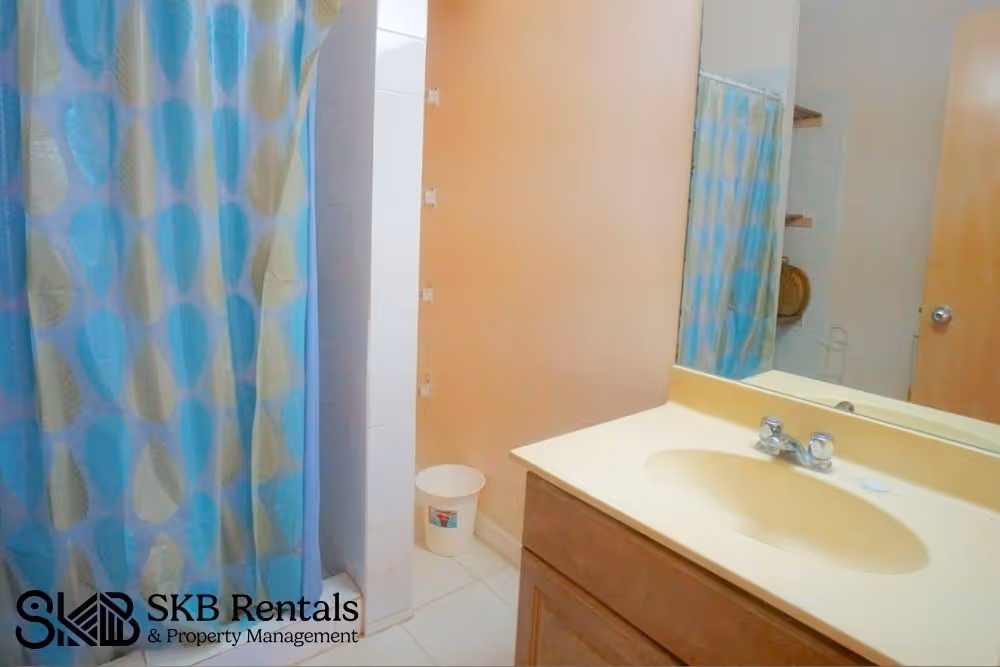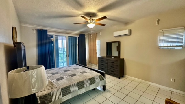 A large covered veranda wraps the two sets of sliding glass doors and provides light and uninterrupted views of the Caribbean Sea. The kitchen is functional with adequate storage and counter space. A guest bath completes this floor.