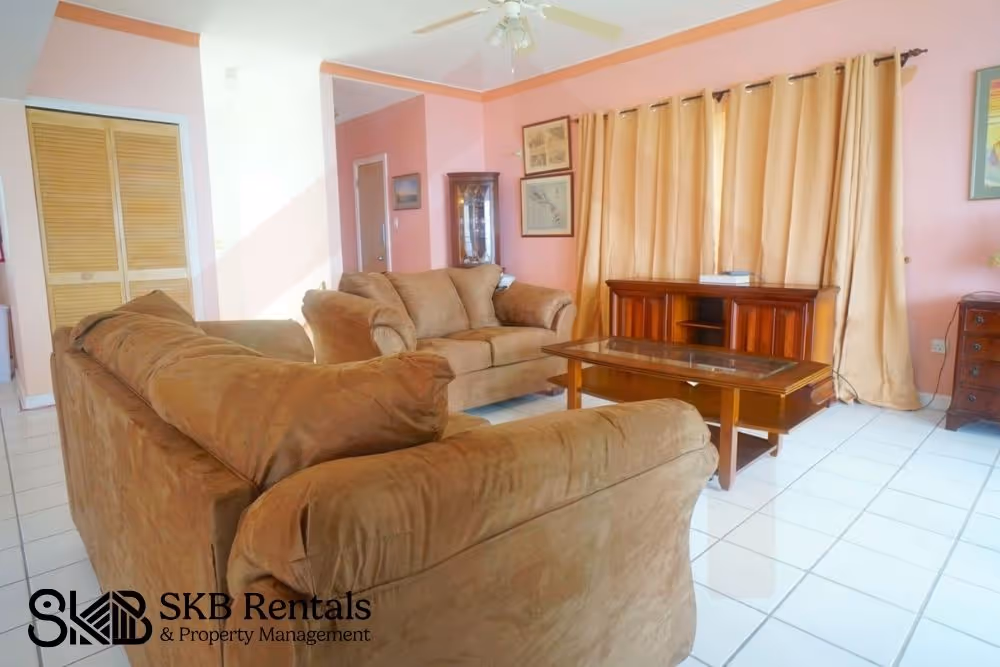 This stand alone furnished villa located in Phase 2 of the Horizons Development is just a short walk from Marshalls and enjoys uninterrupted views of the Caribbean and Nevis beyond. The off road parking area for one vehicle leads to the entrance way and the open plan living room, dining and kitchen area all have been expanded for additional space.