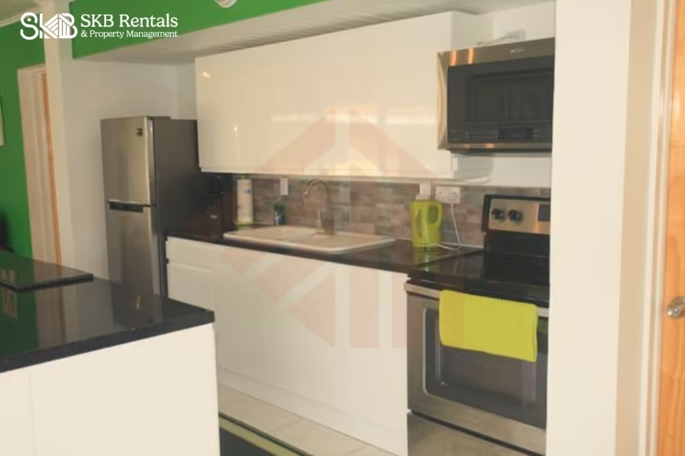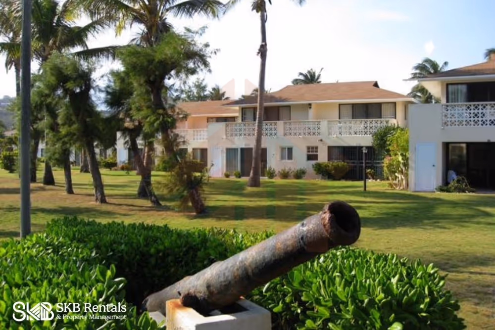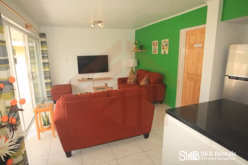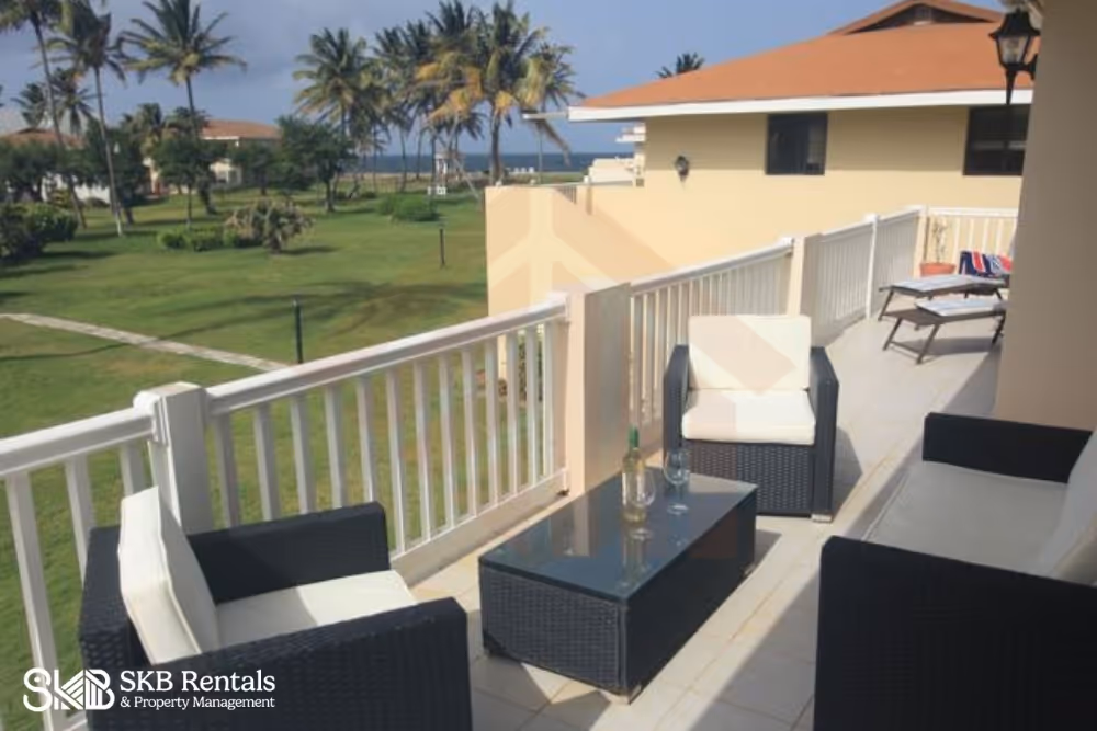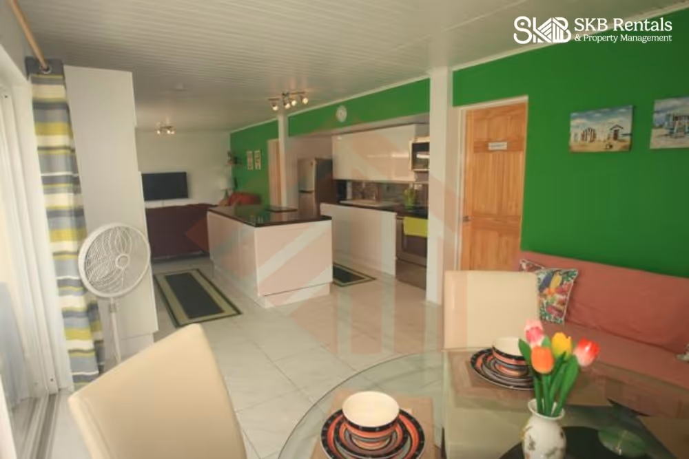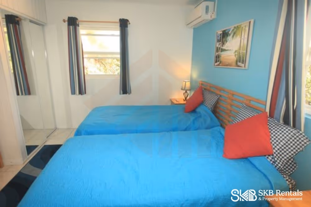 This furnished upper level recently renovated 2 bedroom unit provides a veranda with views of the pool to enjoy cocktails and coffee ! Decorated in a contemporary style the open plan living, dining and kitchen area provide an easy flow through space for entertaining and your enjoyment. Two sliding glass door provide easy access to the full length veranda, pool and nearby BBQ area. The bedrooms are both air conditioned and feature a king size bed and two twin beds (makes a king bed) for family flexibility. A sofa bed provides additional space as needed. Island Paradise is located within easy walking distance to restaurants, groceries, bars, casino, golf and taxi's if required. Parking for a rental car is available at no charge. Laundry facilities are available at an extra charge (tokens purchased from the management office)