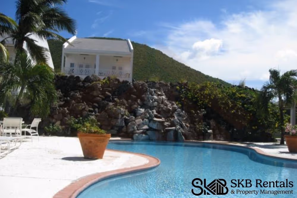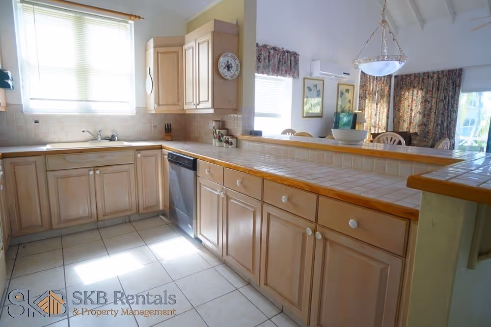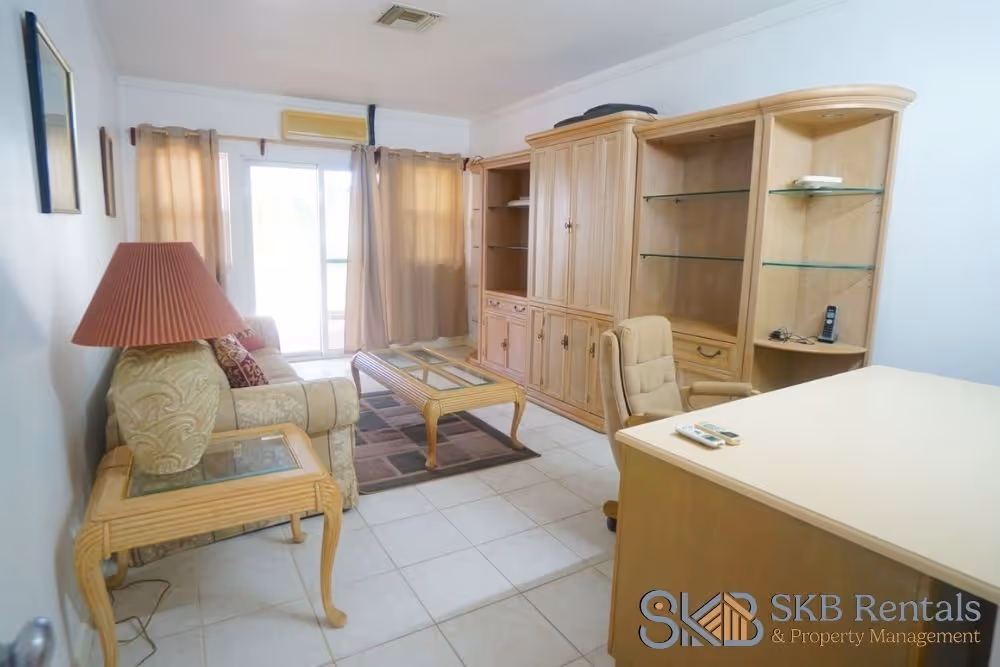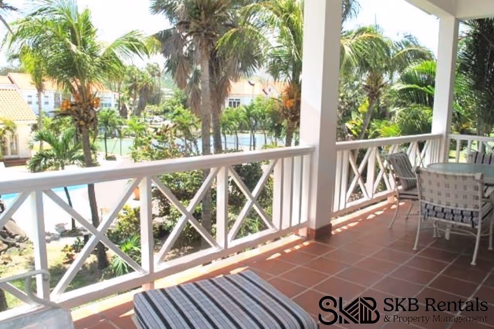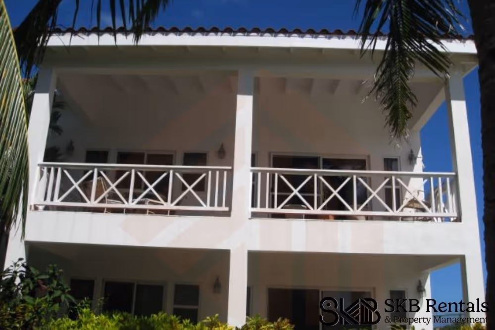 The large master bedroom has a walk in closet and en suite bathroom with additional storage. A private veranda overlooking the garden offers privacy. A family room/office/bedroom with access to the covered veranda completes this level. A wooden stair leads to the mezzanine overlooking the living room and features a sitting area, sleeping area and study or hobby desks. A full size laundry is in the unit. The condo is fully air conditioned and is offered furnished. The development has a back up generator in case of island power outages, beach access and a community pool and tennis court. This property does not have an alarm or security bars installed.