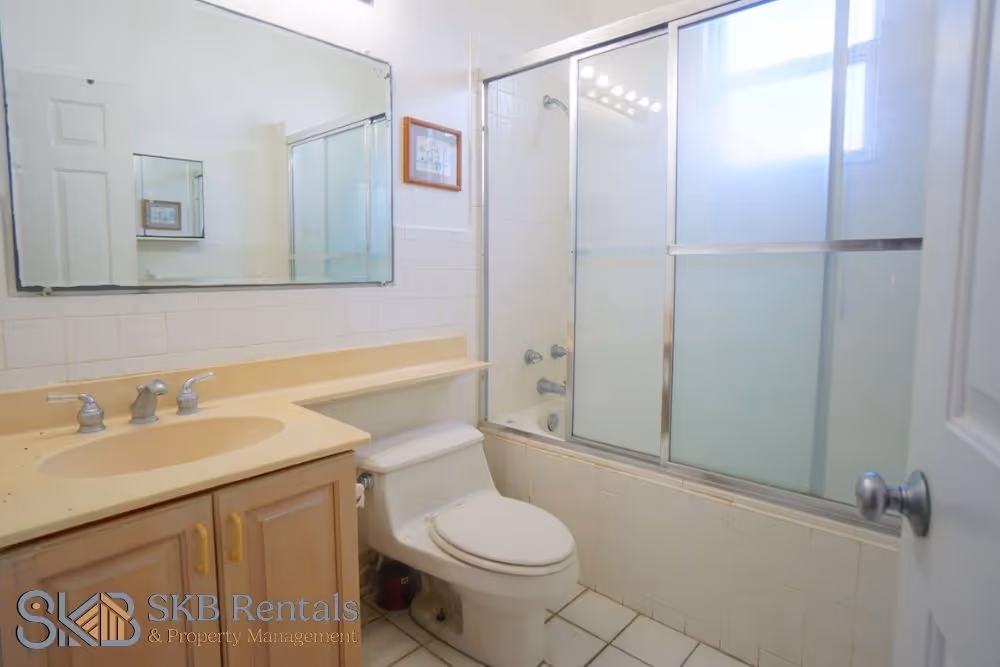 This upper level unit opens from the entrance way and leads to the open plan kitchen and living room. A fully furnished the kitchen offers spacious countertops and the usual appliances and is well equipped. The living room is large and leads to the covered veranda via sliding glass doors and offers views of the pool. The guest bedroom is located behind the kitchen area and has a 3 piece private bathroom set.