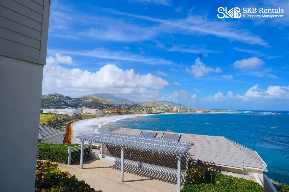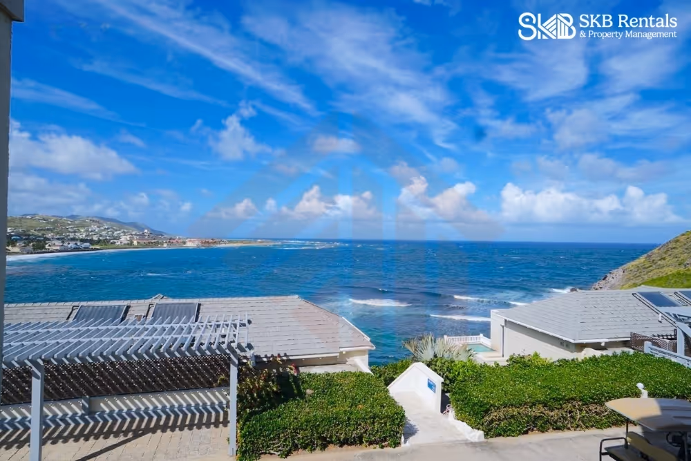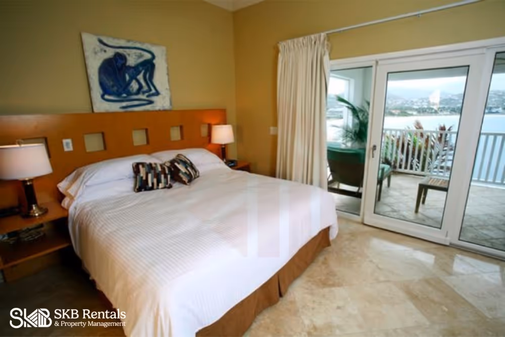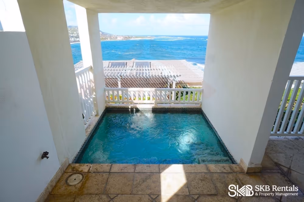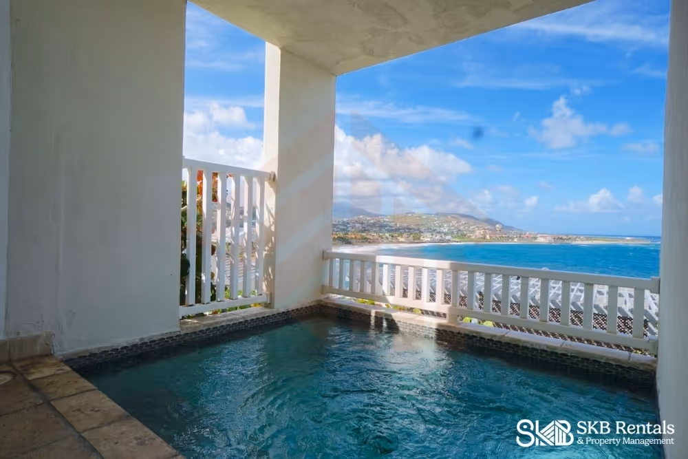 Sample of a 2 bedroom unit (with private plunge pool) which comes fully furnished. Each 2 bed unit (2 units per block) offers a covered veranda area the length of the property. Entry is gained via the living and kitchen area which also has a guest bath and laundry area. Both bedrooms have adequate storage space and en-suite bathrooms - the master bath with a large shower and the guest bathroom with a tub. The villa is fully air conditioned.There is limited access by vehicle to these units but the use of development golf carts is provided. Located in the heart of Frigate Bay, all amenities are within walking distance - beaches, casinos, restaurants, bars and golf course. A stunning condo in an ideal location!