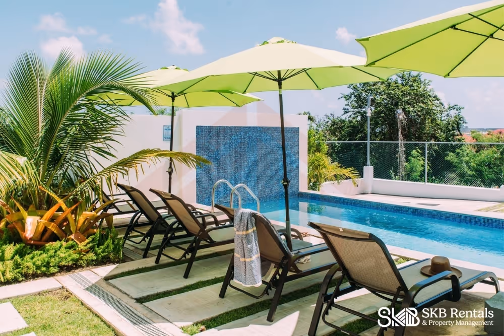 The apartment has its own alarm and the development consisting of 8 apartments in one and two bedroom configurations is also covered by external security cameras and a generator. A large lap pool with separate outdoor shower and landscaped gardens are available for your enjoyment.