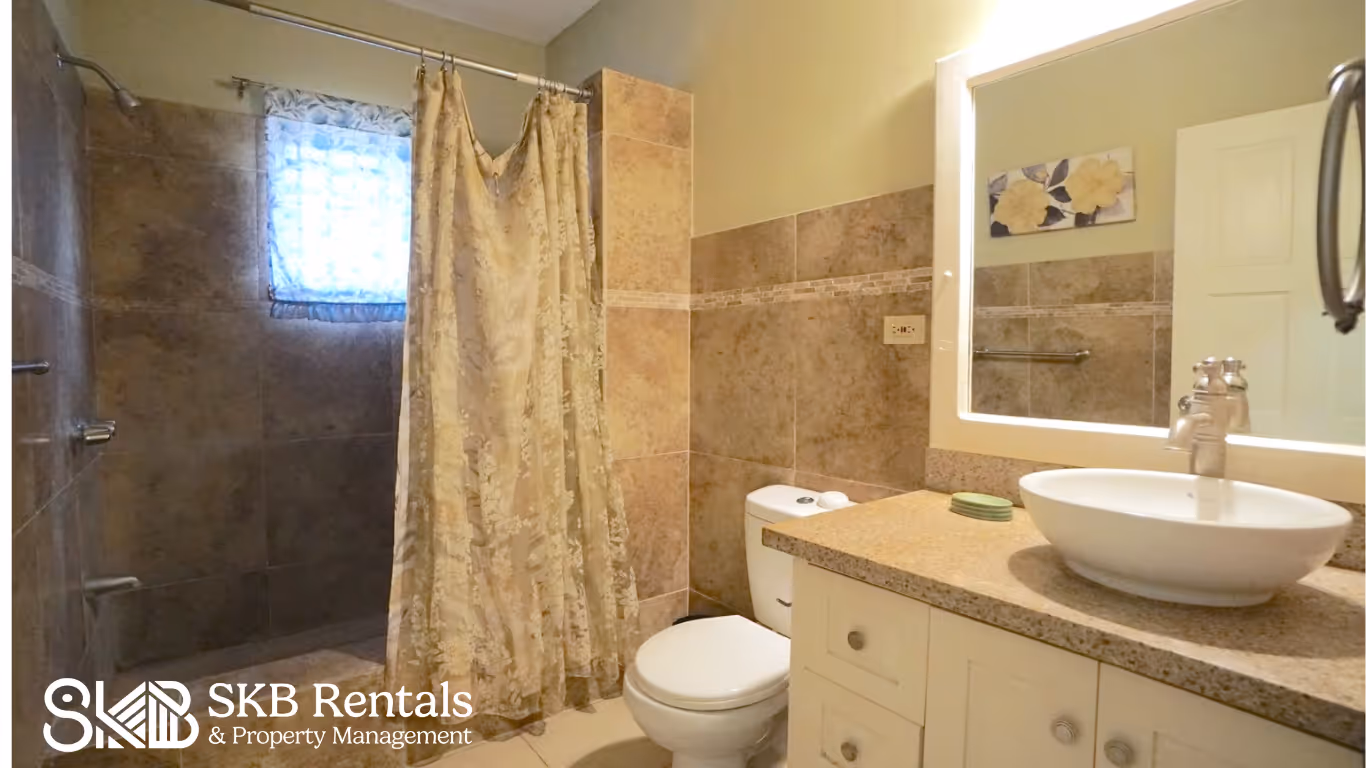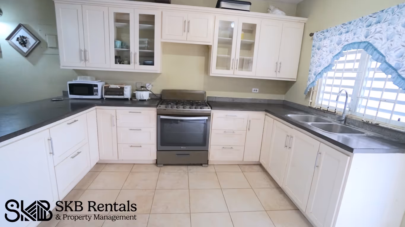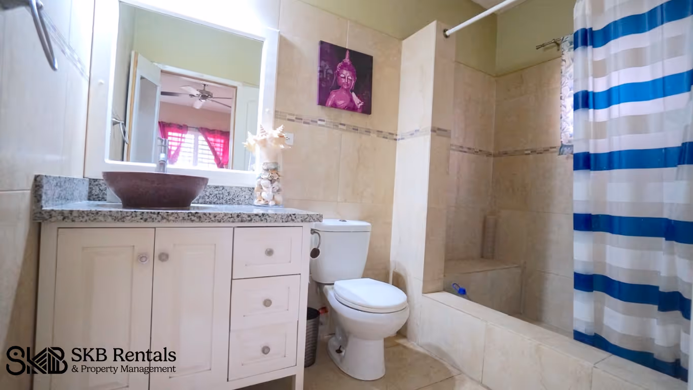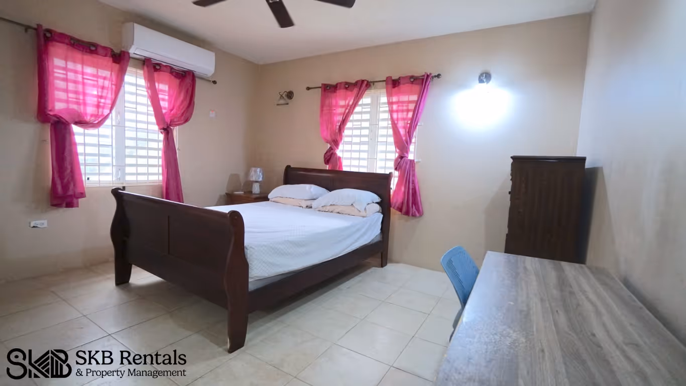 This spacious 2 bedroom apartment is offered fully furnished and move in ready. Located in St Peters, a quiet residential area just 10 minutes from Basseterre, off road parking leads to the entrance way which opens to the living, dining and large kitchen area. The kitchen is spacious with generous counter space and store and gas stove. A washer and dryer is provided and there is a line in the garden for outside drying.