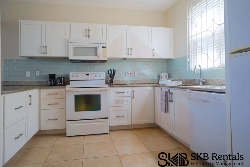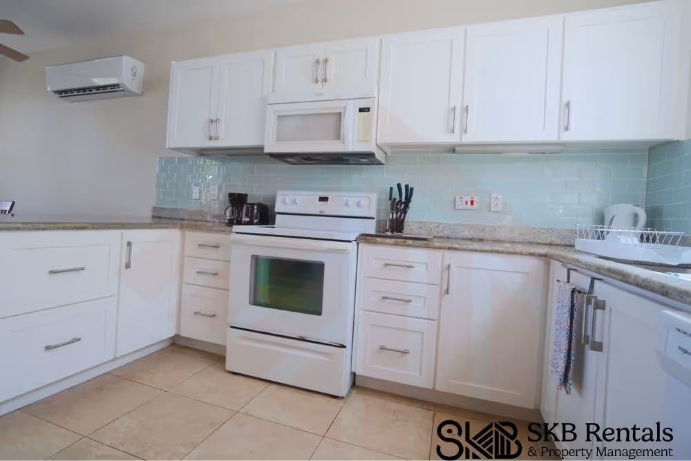 The master bedroom which is accessed via stairs is spacious and features a large finished walk in closet and large en-suite bathroom with double vanity and tub. Sliding glass doors lead to a second covered veranda. The property is fully air conditioned and has an alarm installed. The villa is internet and TV enabled.