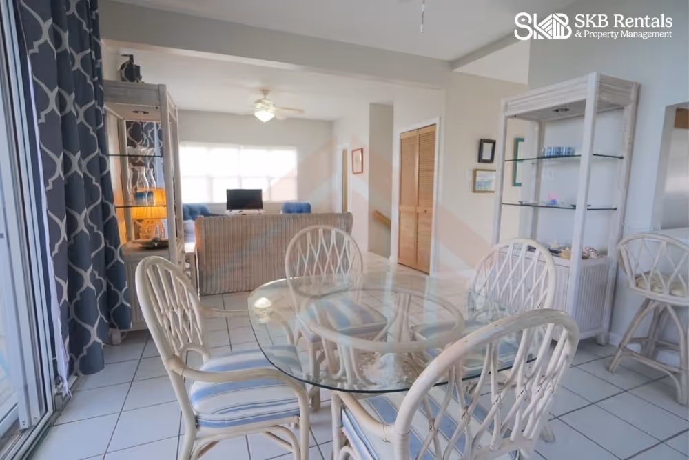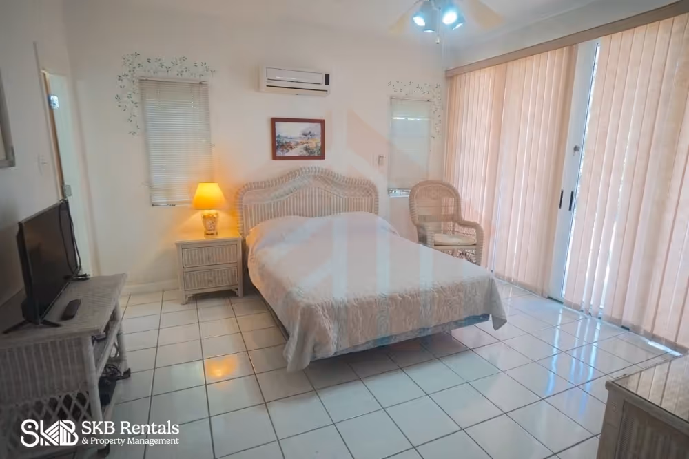 The two bedrooms are located on the lower level of the villa. The master suite features a larger bathroom and both bedrooms are equipped with queen size beds, adequate linens and air conditioned for your comfort. Sliding glass doors from both bedrooms lead to an enclosed veranda which offers ocean and garden views beyond.